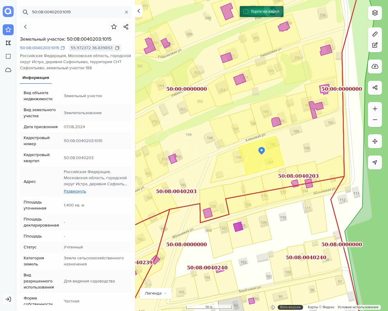 Адрес: Московская область, городской округ Истра, деревня Сафонтьево, территория СНТ Сафонтьево, земельный участок188;